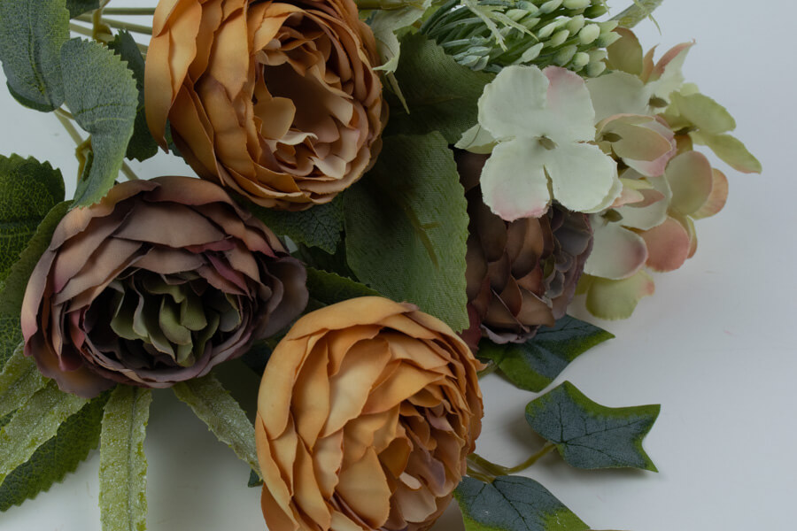 Bukiet sztucznych pełników o wysokości 40 cm. Wykonane z najwyższej jakości materiałów sztuczne kwiaty zachwycają odpornością na uszkodzenia, wieloletnią trwałością i wysokim poziomem autentyczności.