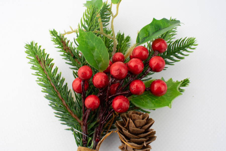 Gałązka ozdobna z czerwonymi kulkami 26cm