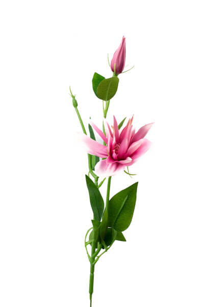 Sztuczna gałązka klematisa składająca się z jednego kwiatka i pąka zakończona drutem . Idealnie nadająca się do kompozycji całorocznych