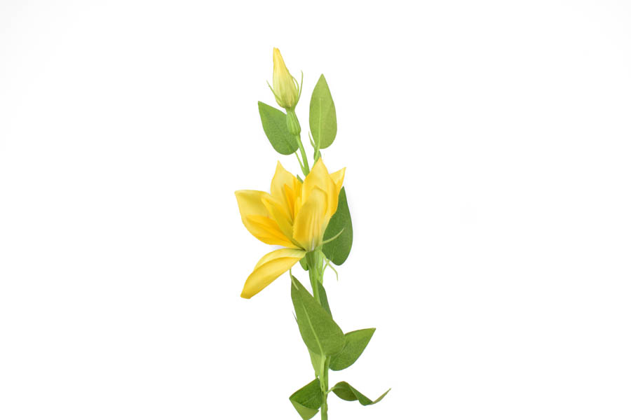 Sztuczna gałązka klematisa składająca się z jednego kwiatka i pąka zakończona drutem . Idealnie nadająca się do kompozycji całorocznych