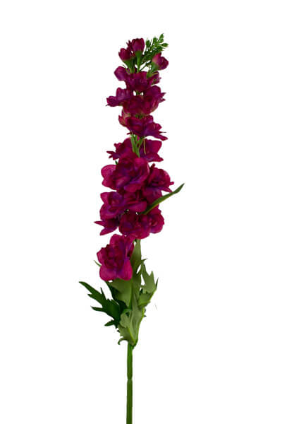Sztuczna Ostróżka o długości 73 cm , z drobnymi kwiatkami i liściem na gałązce.