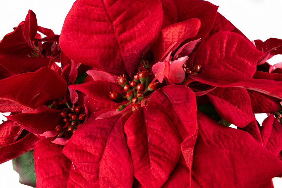 Nasza hurtownia kwiatów sztucznych prezentuje sztuczne gwiazdy betlejemskie wykonane z welwetu i satyny. Wysokiej jakości materiały oraz nowoczesne metody produkcji skutkują powstawaniem niezwykle autentycznych i trwałych okazów. Poinsecje w kolorze głębokiej czerwieni to nieodzowny element w bożonarodzeniowym wystroju domu, biura czy restauracji. Dekoracje świąteczne z dodatkiem Naszej Poinsecji sprawdzą się także jako ozdoba zewnętrzna, w tym także  jako dodatek do sztucznych kompozycji na cmentarz.