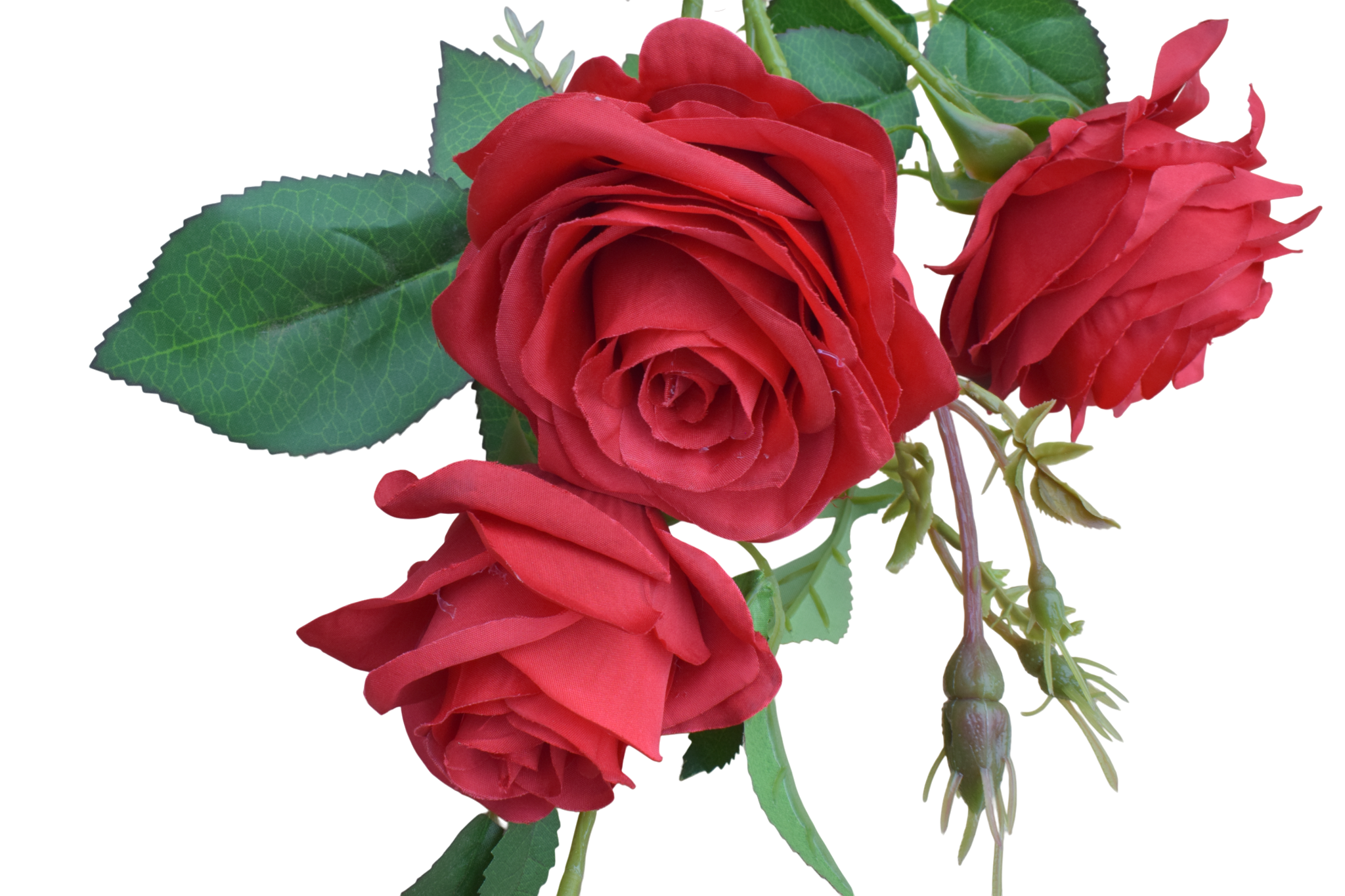 Róża gałązkowa rozwinięta o długości 80 cm , składająca się z 3 kwiatów i pączka