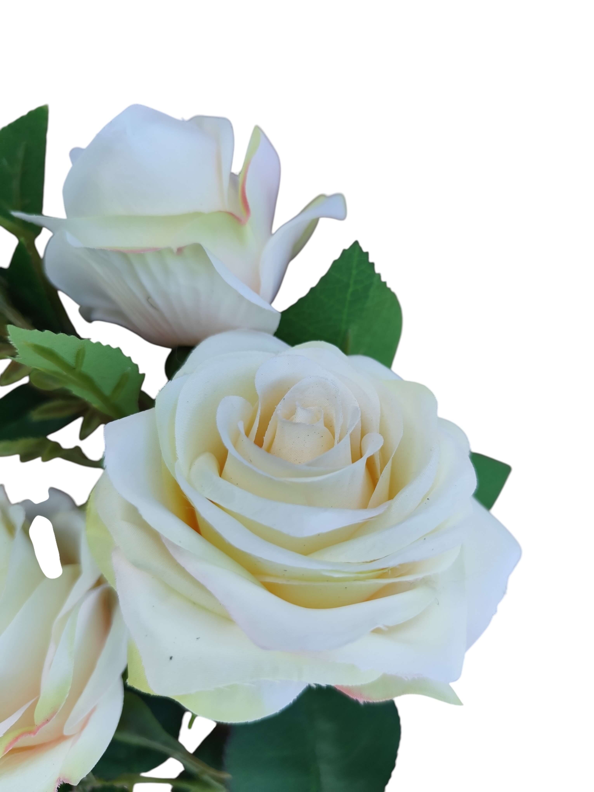 Róża gałązkowa rozwinięta o długości 80 cm , składająca się z 3 kwiatów i pączka