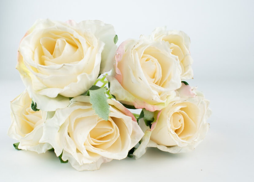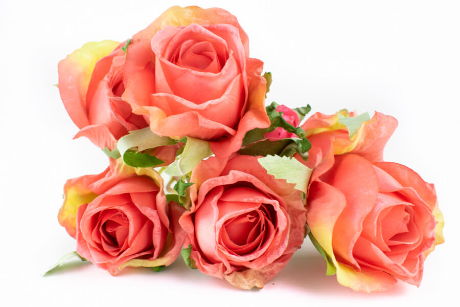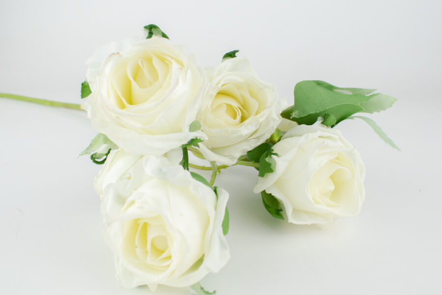 Gałązka róży o rozmiarach 46 cm , posiada 6 kwiatków i 1 pąk.