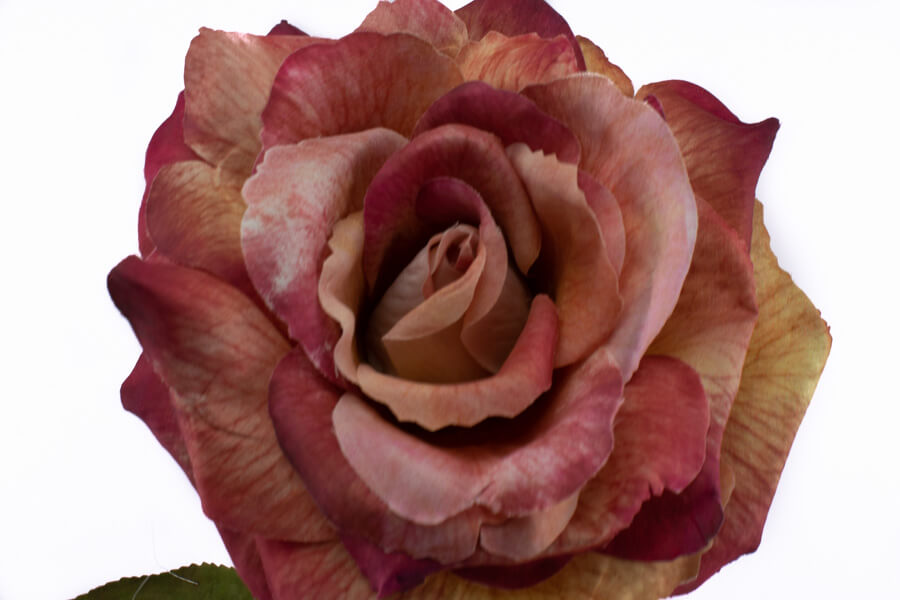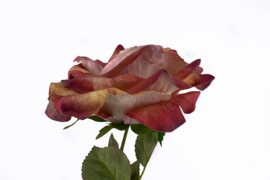Róża pojedyncza o długości 68 cm  i  średnicy główki 14 cm, liście zrobione ze sztywnego materiału