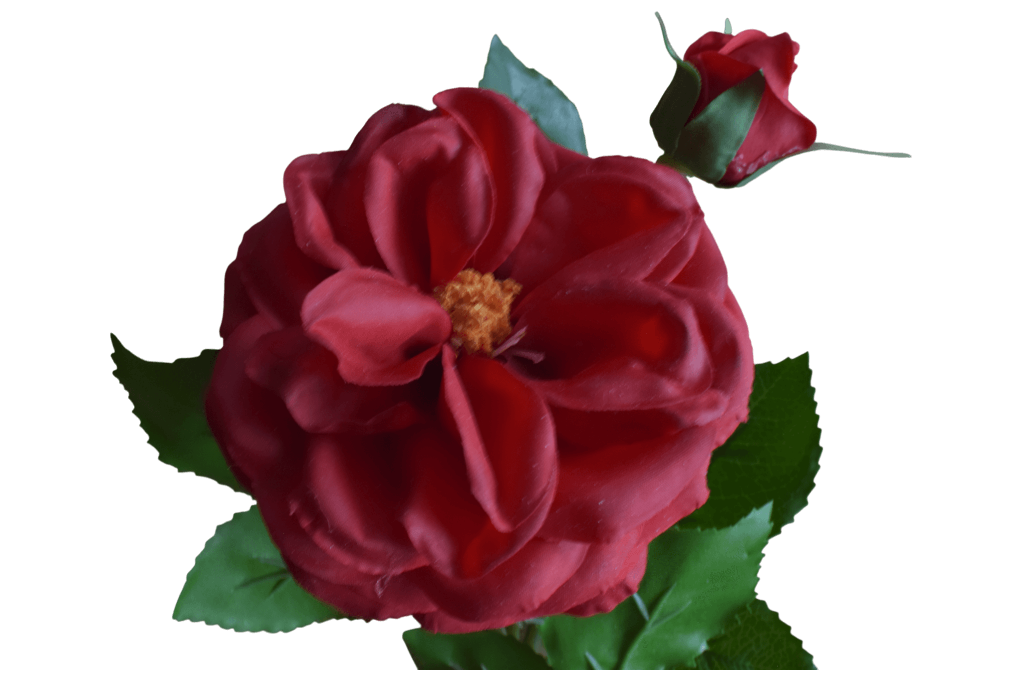 Róża rabatowa ( ogrodowa) o długości 50 cm ,składająca się z główki (delikatnie gumowanej ) o średnicy 9 cm i dwóch pączków.
