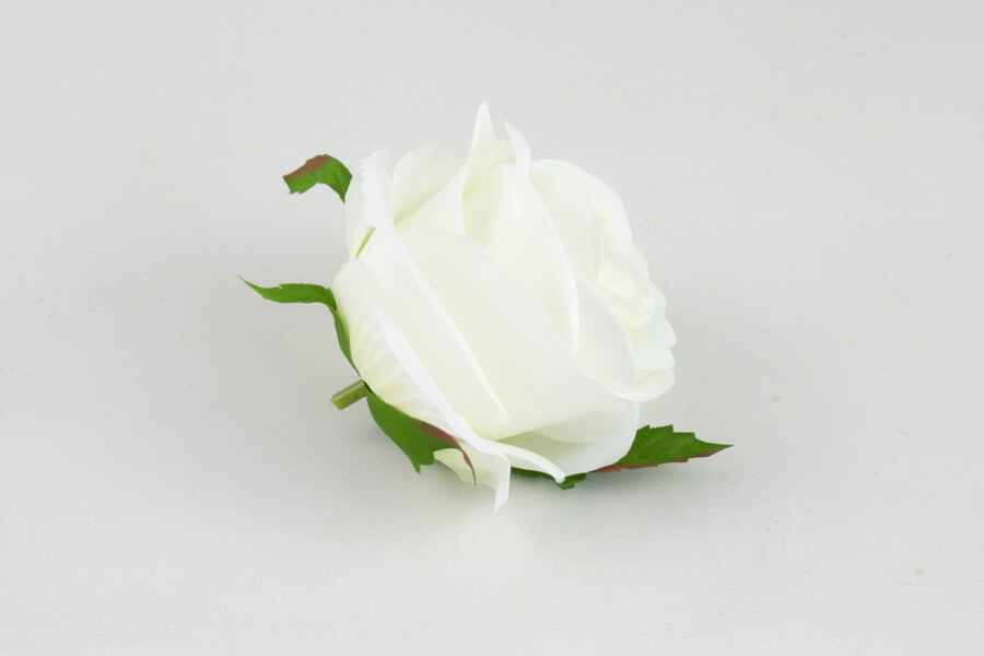 Sztuczna główka kwiatowa wykonana z materiału o średnicy 8 cm i wysokości 6 cm.