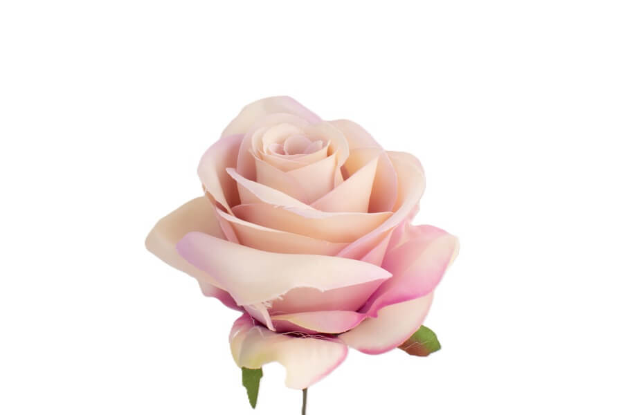 Róża wyrobowa 8cm (12 szt) pudrowy fiolet z zielenią