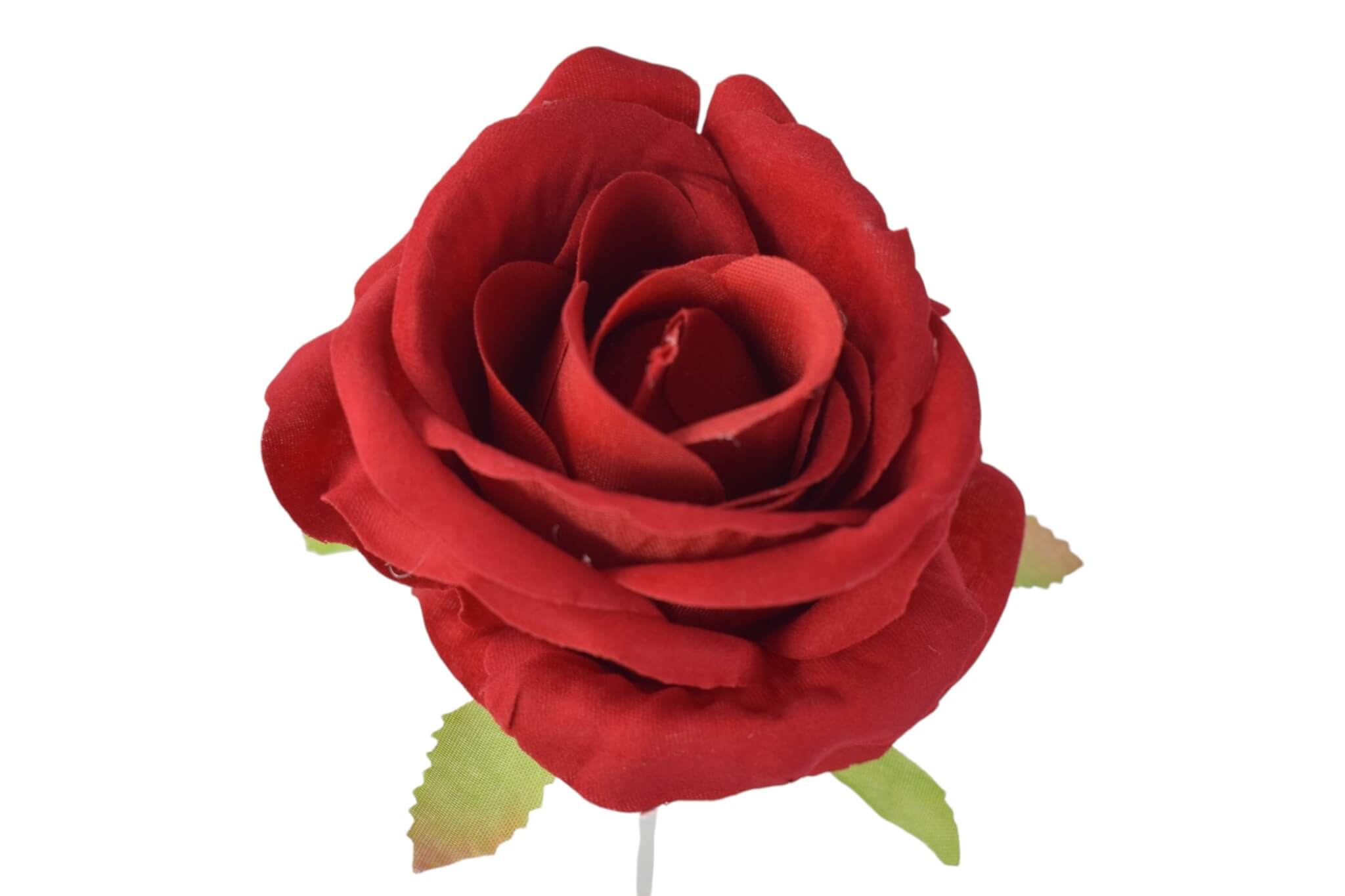 Róża wyrobowa welurowa o szerokości  8cm, wysokośći 7 cm ,  czerwona