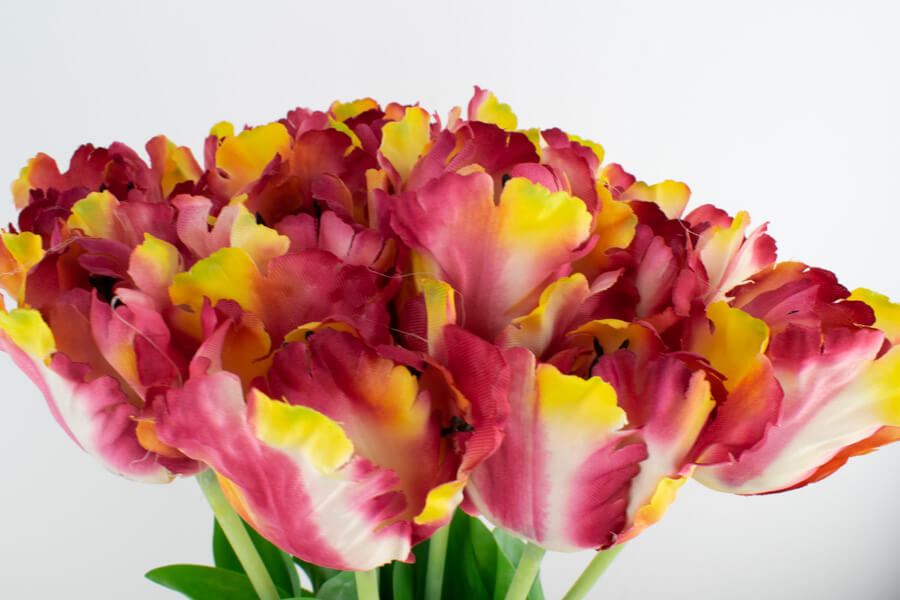 Sztuczny tulipan papuzi o wysokości 50 cm i główce 6 cm.