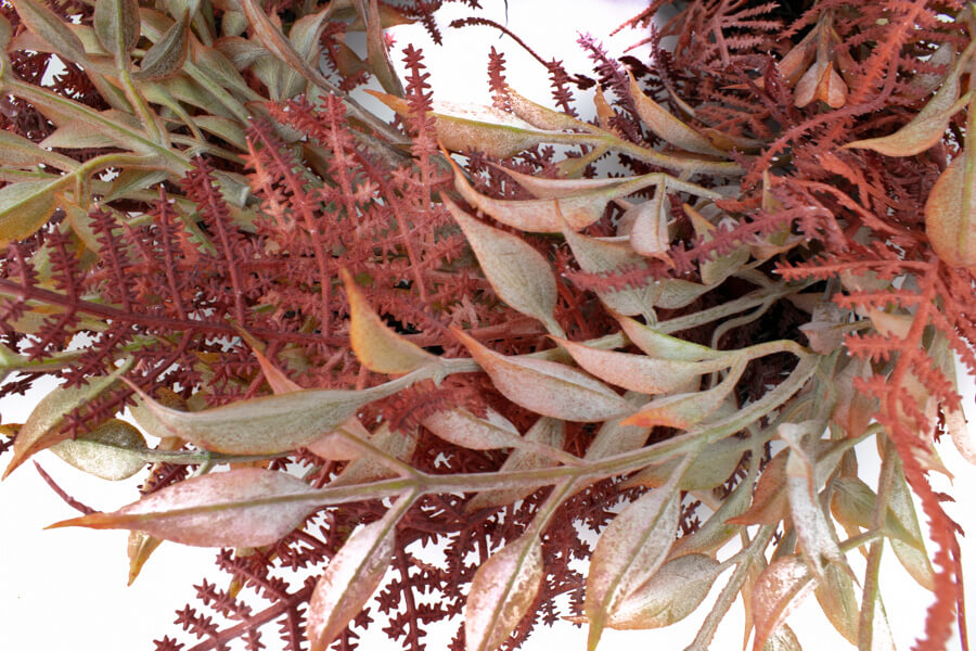 Wianek paproć z ruskusem 30cm różowo bordowy