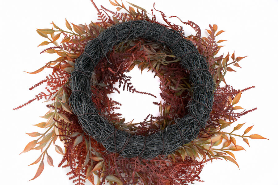 Spód wianka wykonany w całości z tworzywa sztucznego.