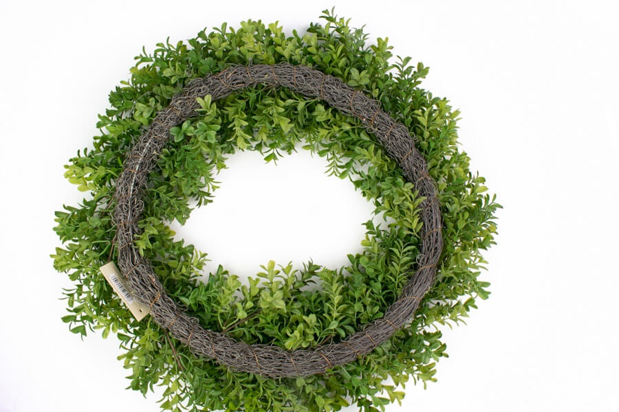 Wianek z zielonego bukszpanu 50 cm na podkładzie z rafii